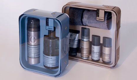 Diecut, glued, folding cartons in transparent and frosted plastics or cartonboard.
