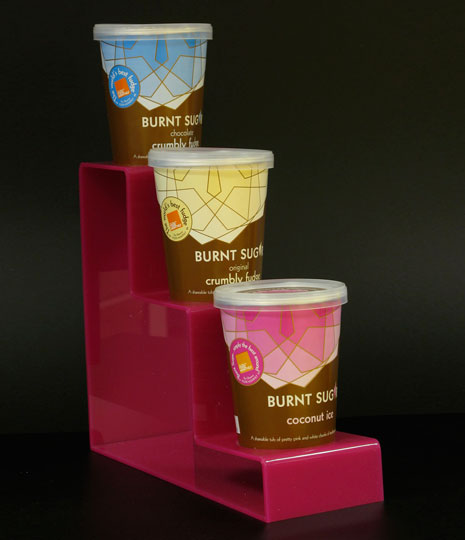 PoS displays and retail ready formats in acrylics, vacuum formings, metals, clear and coloured PET, PP and PVC and subtle fluted boards.